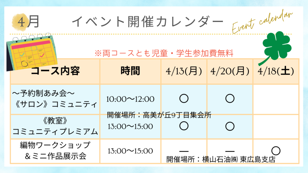 - あみもの歴の有無は問いません。